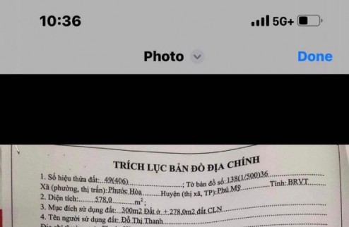 DT 578 m2 có 300m2 Đất Ở. Góc 2 mặt tiền đường