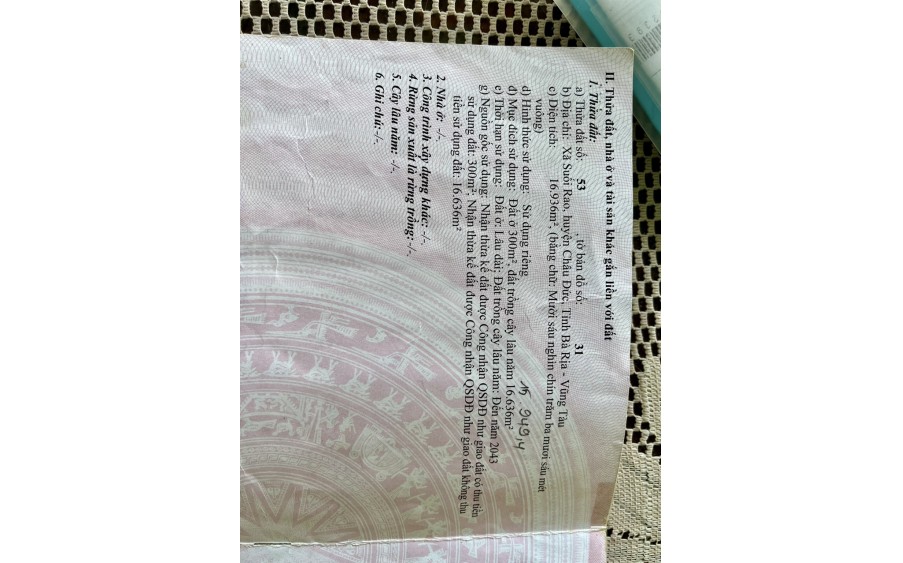Chủ cần bán 1 ha6 , 300 thổ cư mặt tiền nhựa suối rao