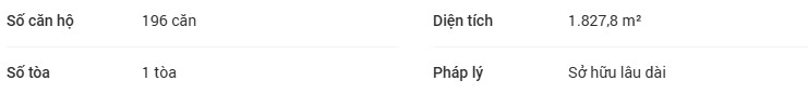 Quy mô: 1 tòa cao 17 tầng gồm 196 căn hộ. Trong đó: