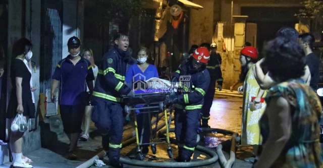 Lực lượng cứu hộ tiếp cận đám cháy tại chung cư mini quận Thanh Xuân, Hà Nội tối 12/9.