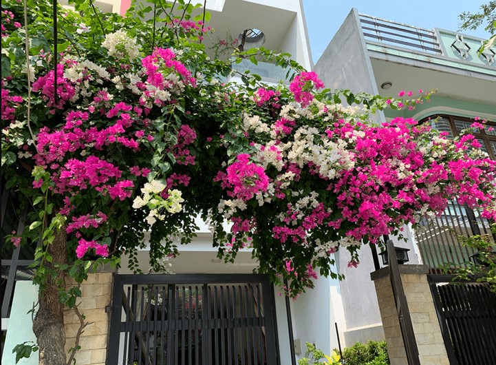 Hoa giấy đã xuất hiện ở Việt Nam từ lâu và được ưa chuộng trong trang trí nhà cửa cũng như thiết kế giàn hoa leo trước cổng. Với đặc tính dễ leo giàn, loài hoa này đặc biệt phù hợp để tạo nên những vòm hoa rực rỡ ngay lối vào. Sắc hoa tươi tắn, nhẹ nhàng không chỉ mang lại vẻ đẹp nên thơ, bắt mắt mà còn giúp không gian ngôi nhà trở nên rạng rỡ và đầy sức sống.