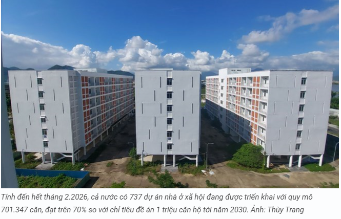 Theo Bộ Xây dựng, tính đến đầu năm 2026, cả nước đã triển khai hàng trăm dự án nhà ở xã hội với quy mô hàng trăm nghìn căn hộ, đạt phần lớn mục tiêu trong đề án phát triển một triệu căn đến năm 2030.