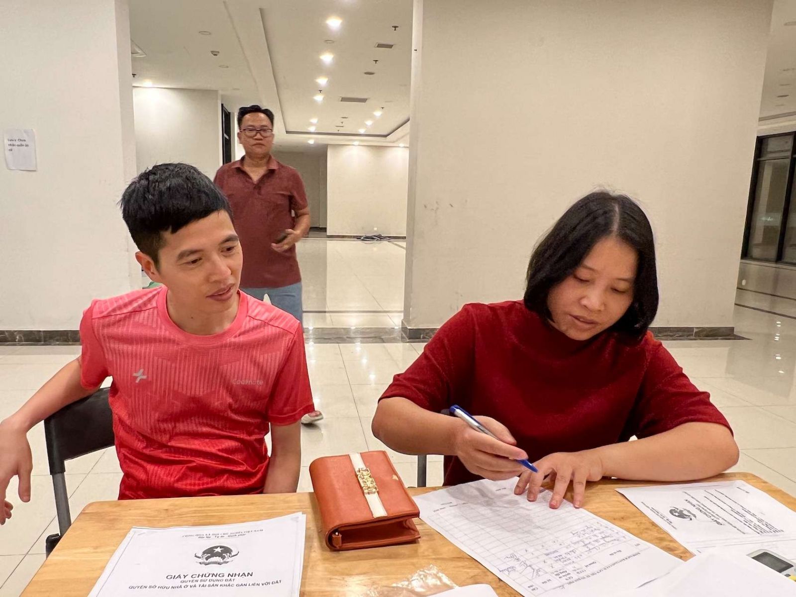 Chị Ngọc Anh nộp bản photo sổ đỏ cho Tổ trưởng Tổ dân phố.
