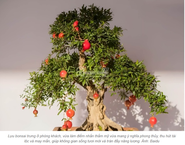 Hoa lựu đỏ rực rỡ, quả tròn đầy mang lại cảm giác ấm áp, tượng trưng cho sự viên mãn và gắn kết trong gia đình. Vì vậy, nhiều người lựa chọn đặt lựu bonsai trong phòng khách hoặc khu vực sinh hoạt chung như một cách “nuôi dưỡng” năng lượng tích cực.