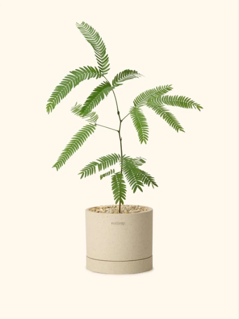 Cây everfresh với tán lá mảnh và xếp lớp được trồng trong chậu sứ tròn đơn sắc, phù hợp đặt tại các không gian như phòng đọc sách, phòng ngủ. Ảnh: Soilboy