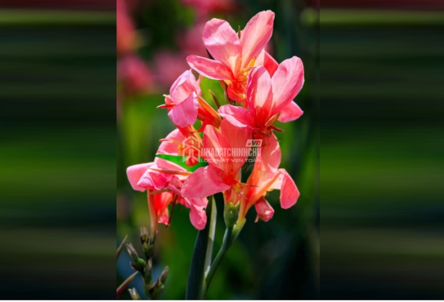 Vẻ đẹp của dong riềng đỏ nằm ở bộ lá to bản, màu xanh đậm, dày dặn và xếp so le đầy sức sống. Thân cây mọc thẳng, tạo dáng khỏe khoắn. Hoa dong riềng đỏ chính là điểm nhấn nổi bật nhất: cánh lớn, màu sắc rực rỡ với các tông đỏ, vàng, cam, hồng hoặc phối hợp hai màu, thường nở rộ vào mùa hè.